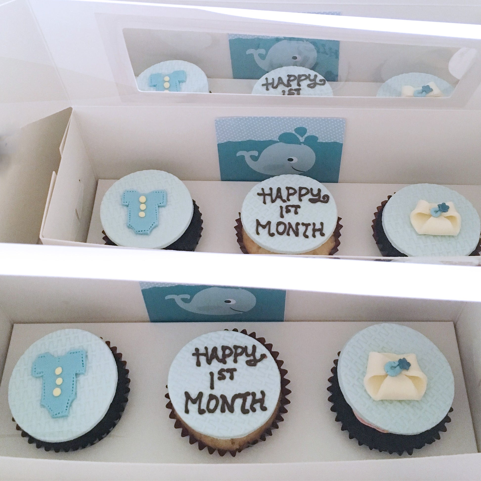 3 pc Assorted 1st month fondant cupcakes, includes customized card